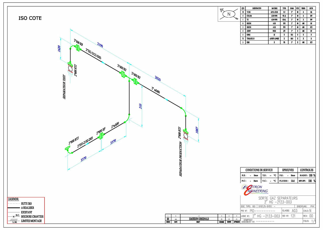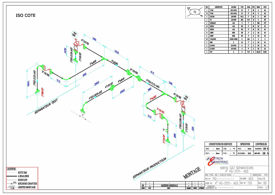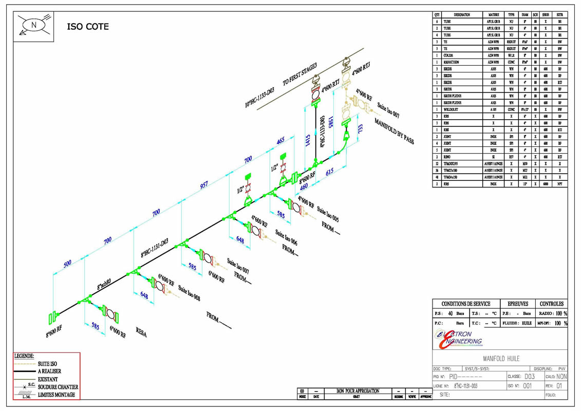 - Modélisation des lignes de tuyauterie suivant les PID fournis par le MO - Etablissement des plans isométriques - Etablissement du MTO - DAO